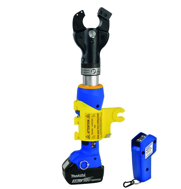 Ett smart verktyg från Klauke med fjärrstyrning för tex montering på teleskopisk stång t.ex vid rasering av ledning.