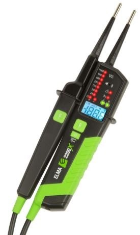 Med Elma 2200X återuppfinner Elma spänningstestaren ännu en gång. Elma 2200X har alla de funktioner som du känner igen från Elma 2100X, men kommer med testledningar i extra kraftig kvalitet. Dessutom är instrumenthuset i ett kraftigare och mer robust utförande. Man kan belasta mätpunkten. Det ger både möjlighet för urladdning av inducerad spänning i mätpunkten och för ett enkelt JFB-test, då belastningen är 30mA vid 230V.