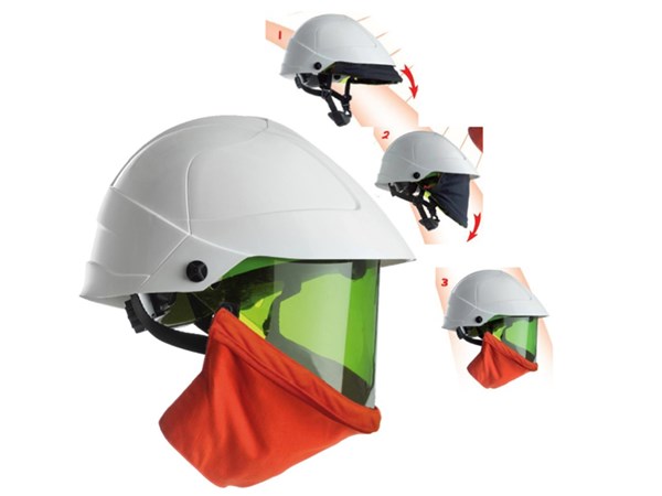 Säkerhetshjälm med integrerat ljusbågstestat visir och haklapp.